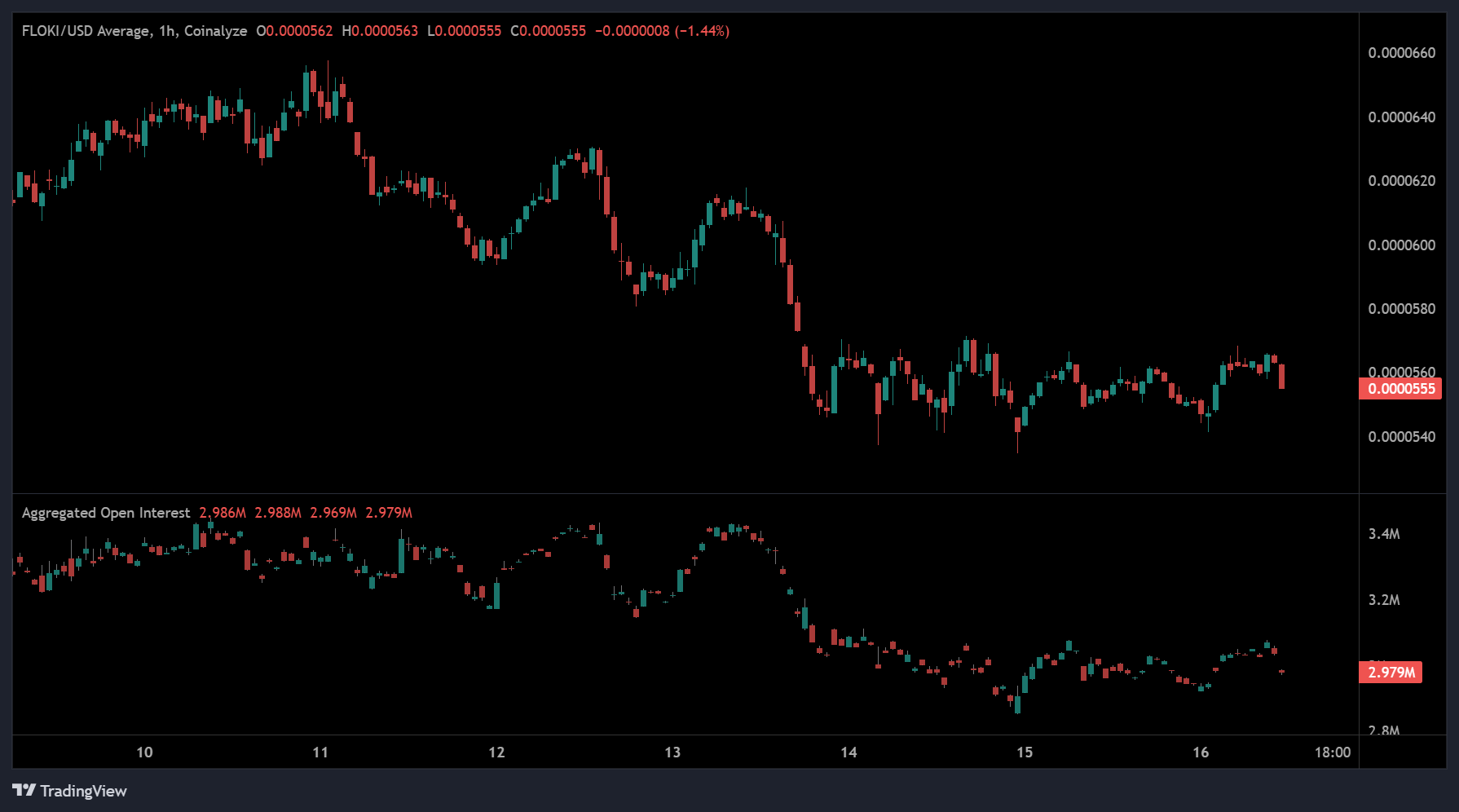 Recent FLOKI/USD intraday data indicate continued downward pressure, with the price observed near $0.0000555, showing a 1.44% decline after failing to sustain momentum above $0.0000660.