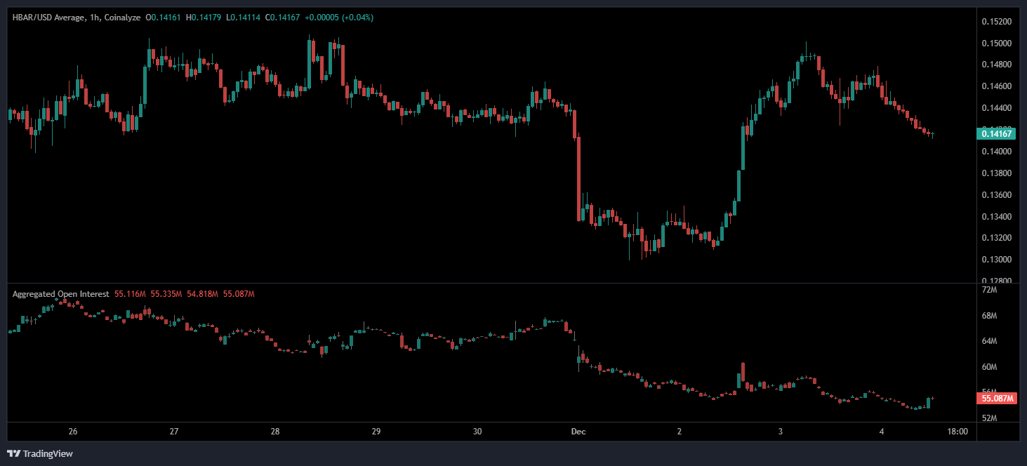 HBAR News 2025: Holds $0.15 Support as Open Interest Recovers Following Volatility Flush