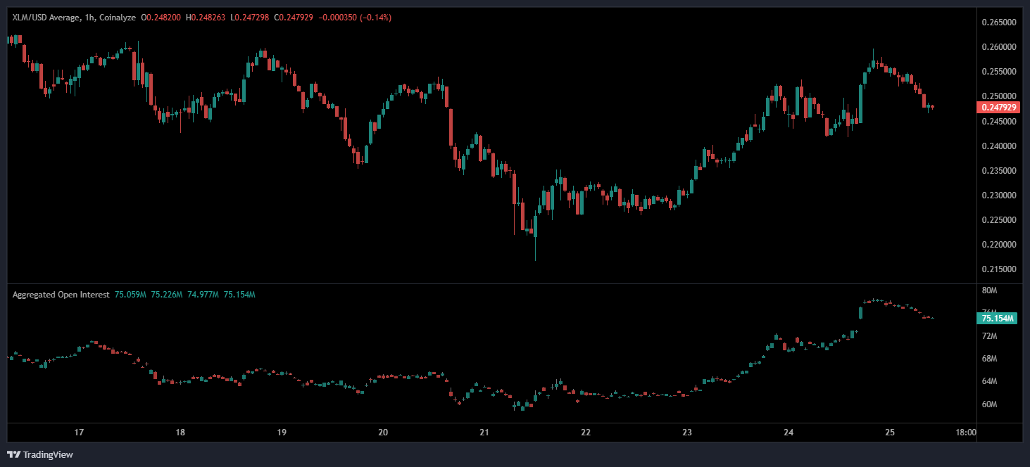 Stellar price continues to face mounting pressure as the token fails to secure a firm recovery above the closely watched $0.25 level.